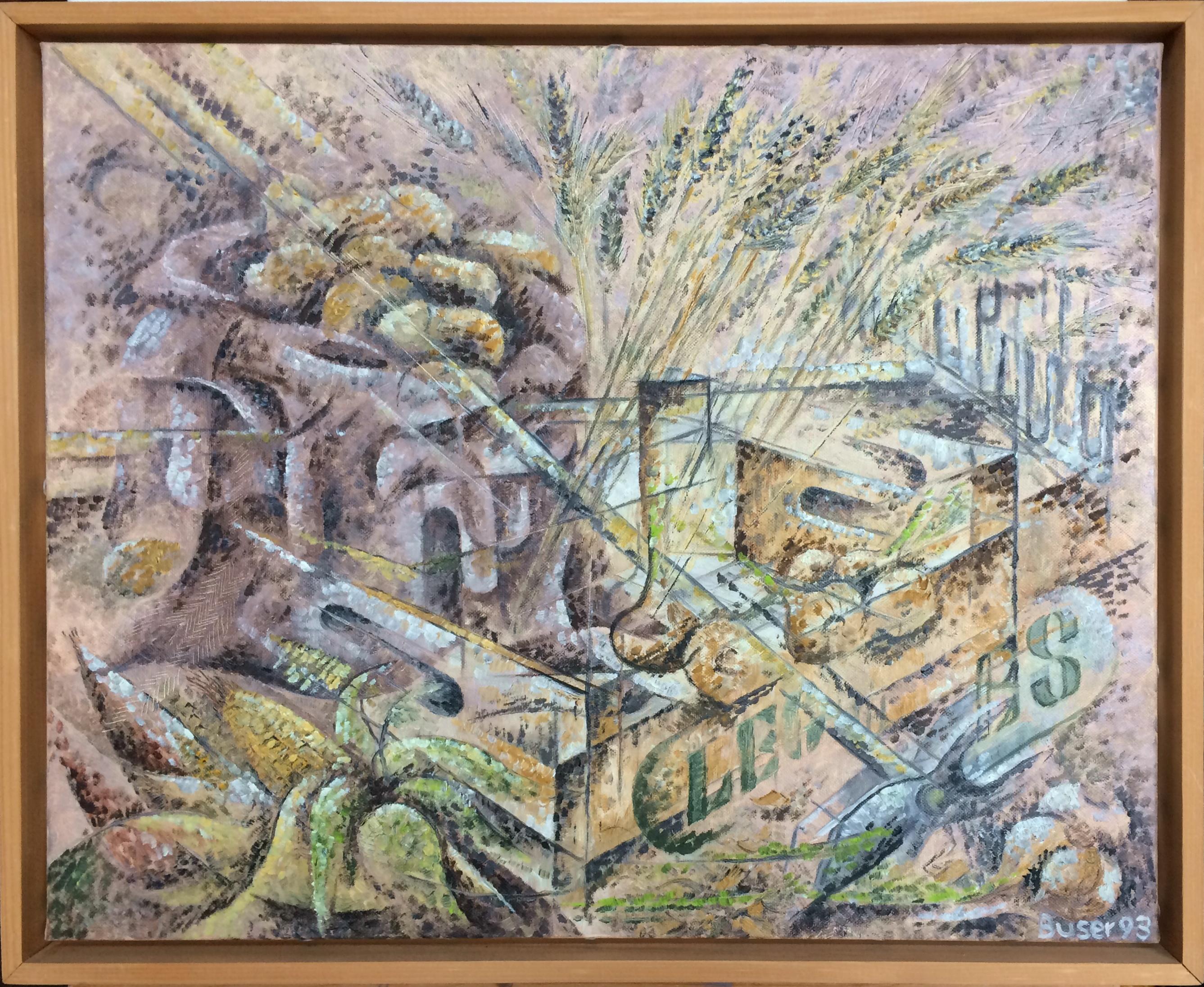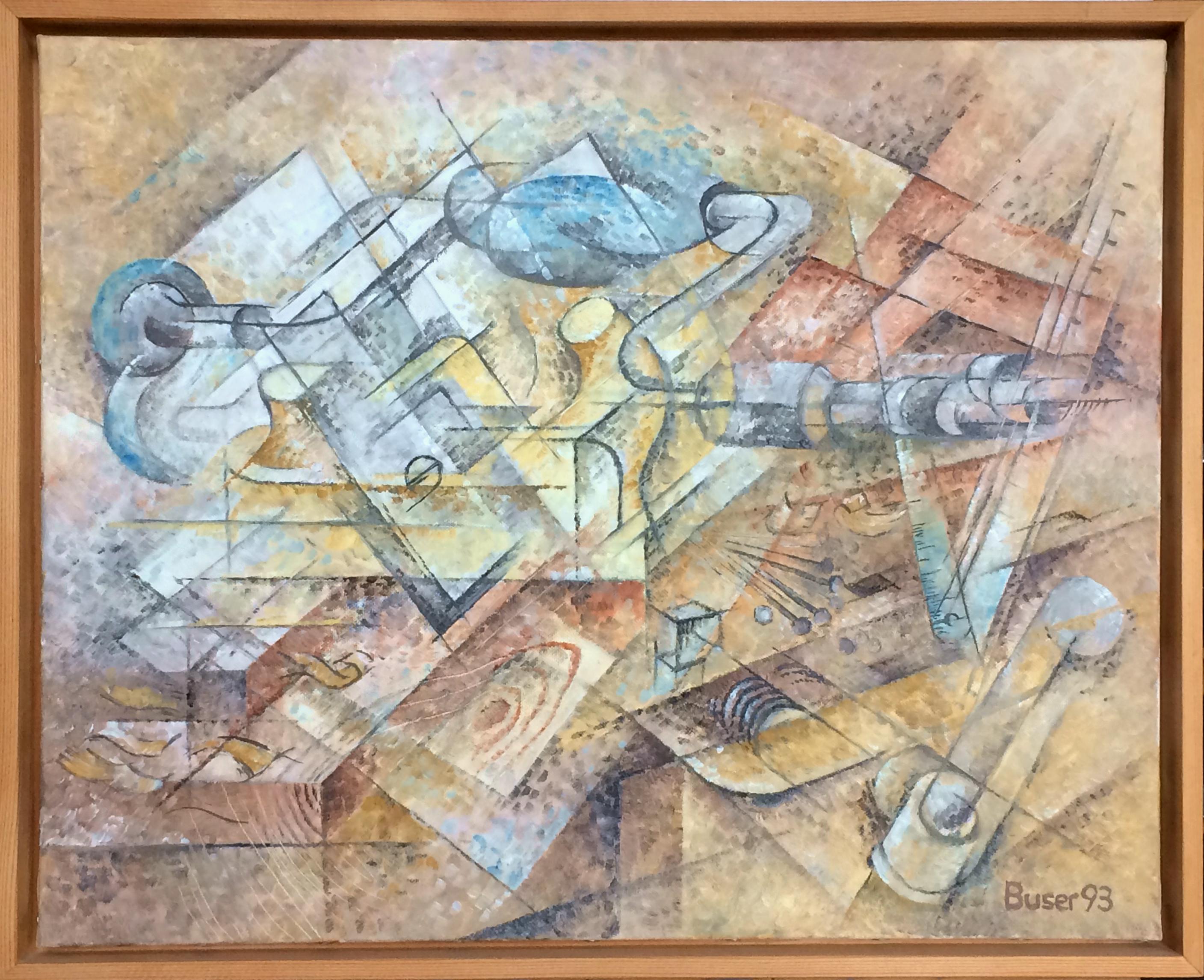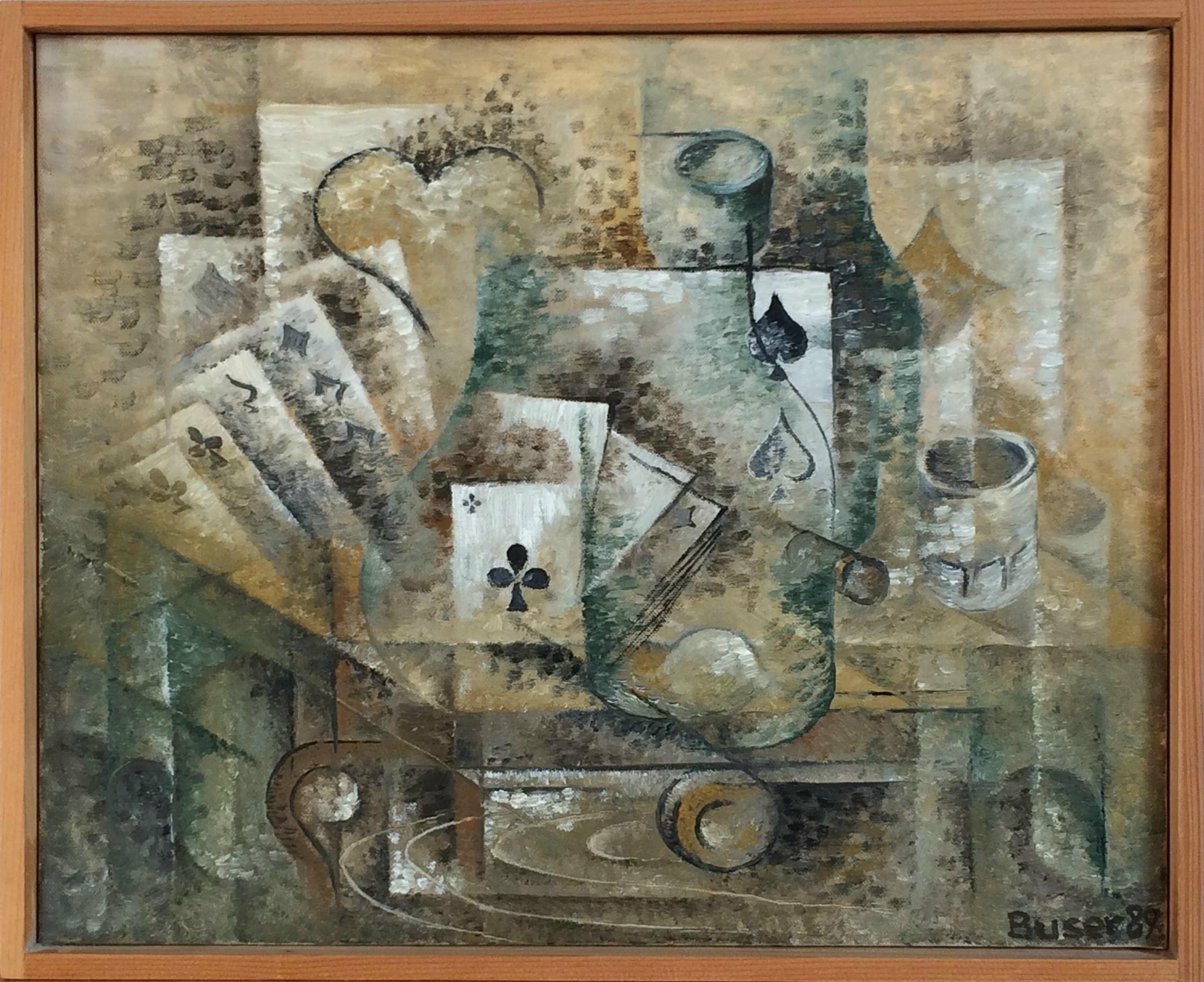 Mit Spachtel und Pinsel. Anfänglich auch auf Karton und Pavatex, heutzutage ausschliesslich auf Leinwände mit Keilrahmen.