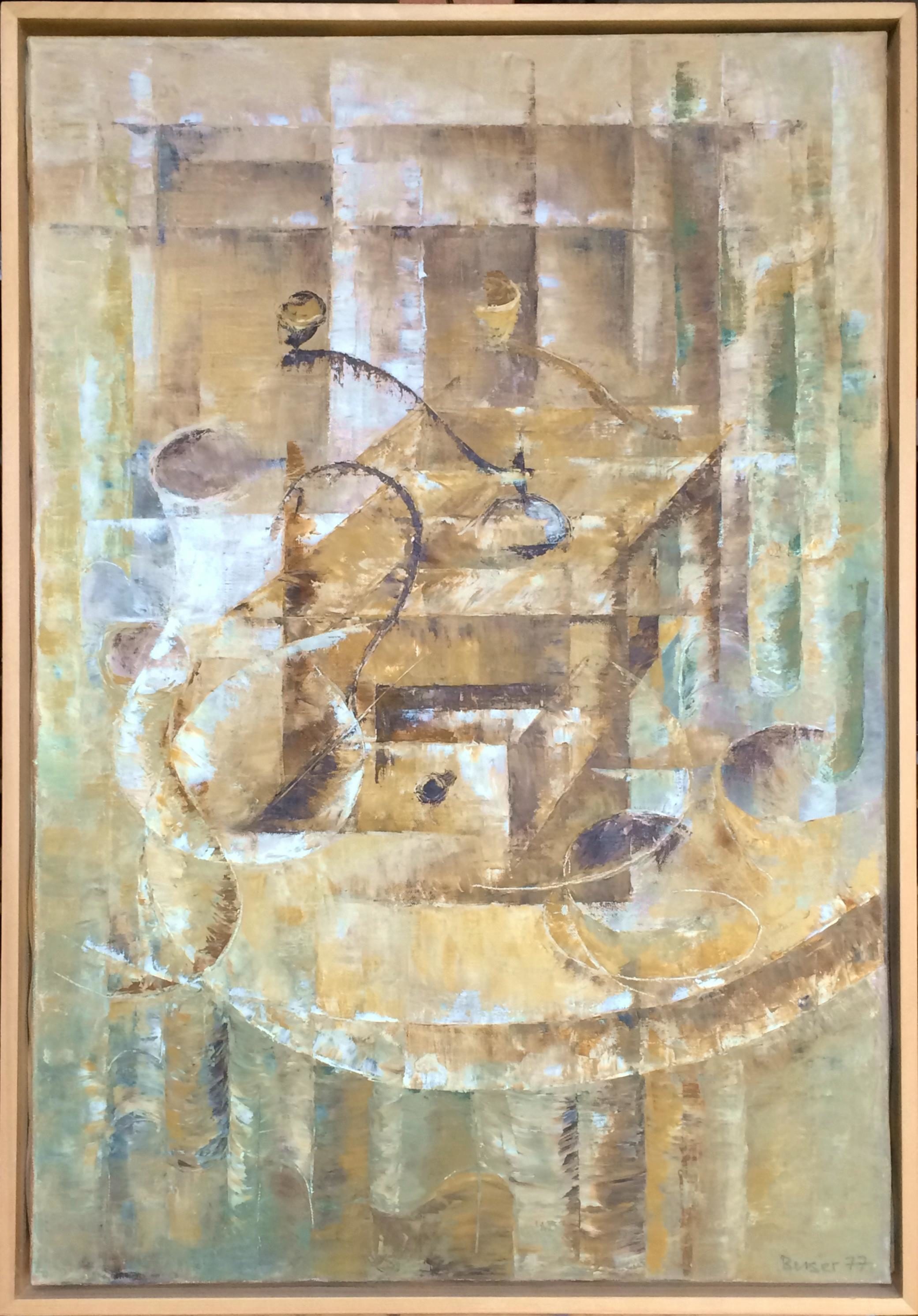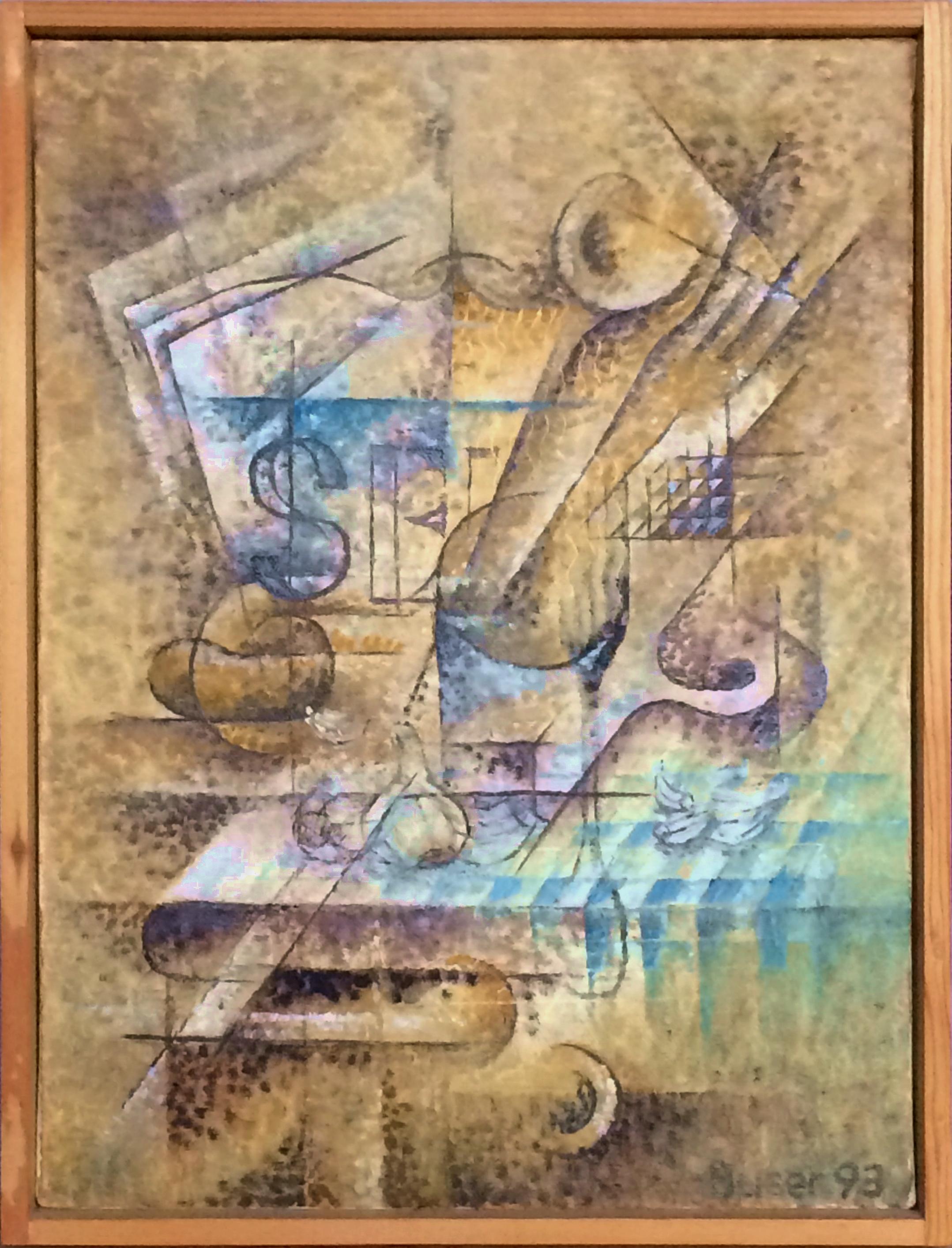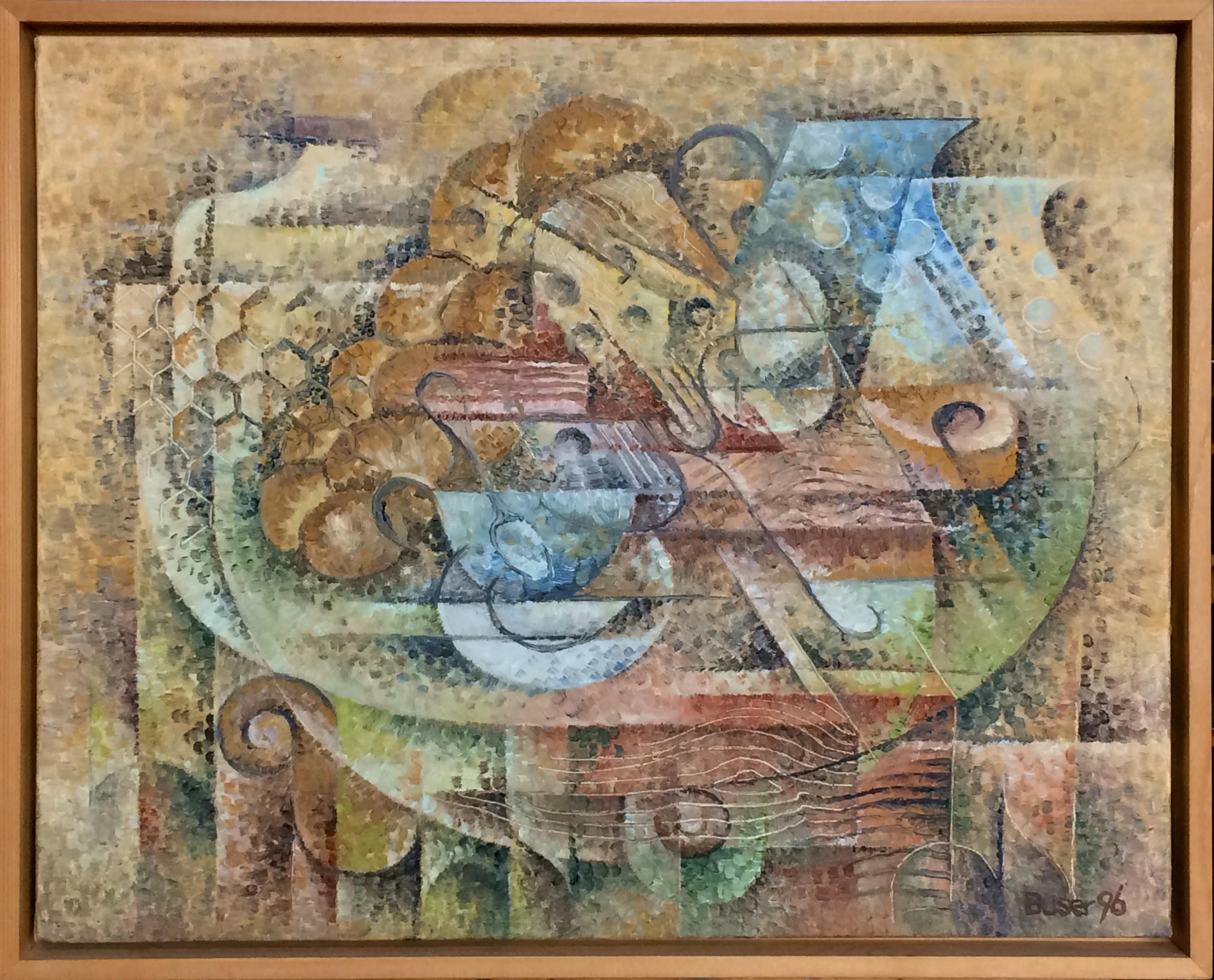 Mit Spachtel und Pinsel. Anfänglich auch auf Karton und Pavatex, heutzutage ausschliesslich auf Leinwände mit Keilrahmen.